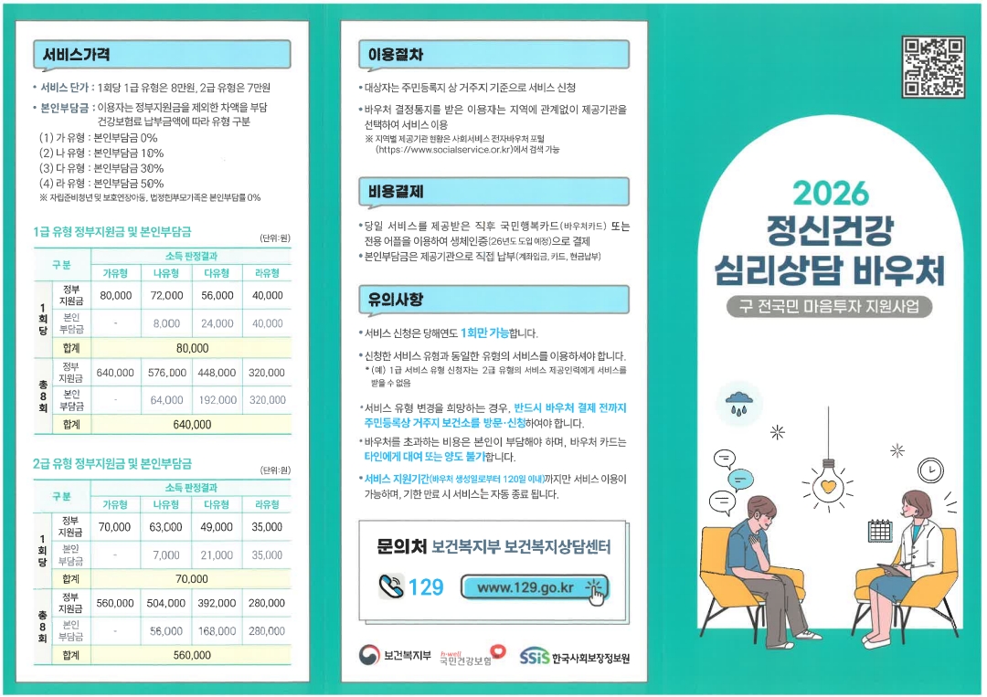 2026년도 정신건강 심리상담 바우처 리플렛이 아래와 같이 나왔습니다